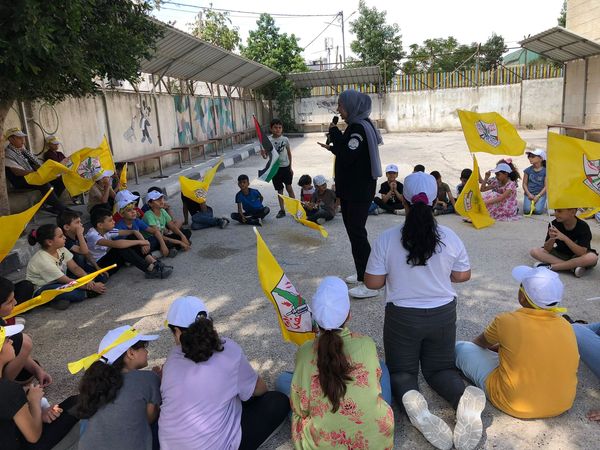Ramallah - 8/29/2024 The Customs Police Department gave an awareness lecture to students of the "Youth is the Future's Bet" summer camp, affiliated with the Fatah Movement region, today, Thursday, in Nablus Governorate, from which (50) male and female students benefited. This came within the program of the police to spread awareness of the nature of its work, its role and tasks in protecting markets, combating tax evasion and customs smuggling, and combating illegal goods, and emphasizing the need to submit reports in the event that they detect any illegal products in the markets, by contacting the toll-free number (132) or via the Customs Police Department's social media sites.