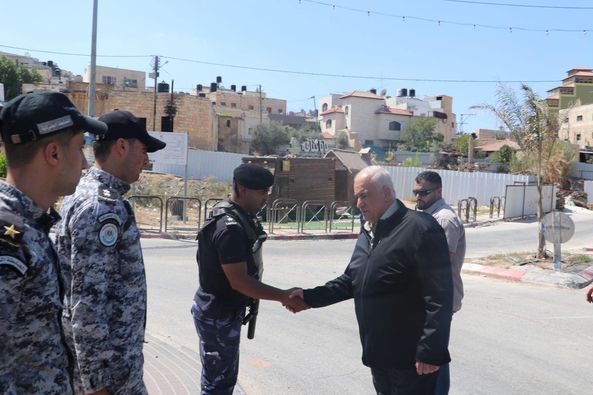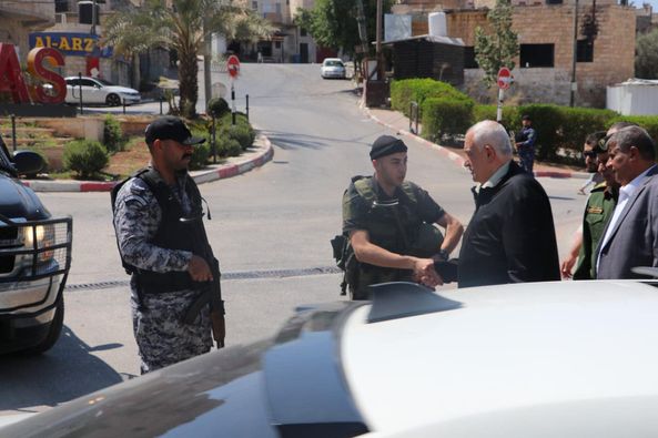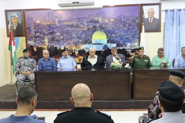 Ramallah - 8/30/2024 The Deputy Director of the Customs Police in Tubas and the Northern Jordan Valley Governorate, Major/ Saad Sayel, participated in receiving His Excellency the Minister of Interior, Major General/ Ziad Hab Al-Reeh, today, Friday, at the headquarters of the region's command, in the presence of His Excellency the Governor of Tubas and the Northern Jordan Valley Governorate, Ahmed Al-Asaad, and the directors of the security establishment in the governorate. During the meeting, His Excellency the Minister/ Hab Al-Reeh discussed issues that concern and serve citizens and maintain order and law, and inspected the joint patrols operating in the field.