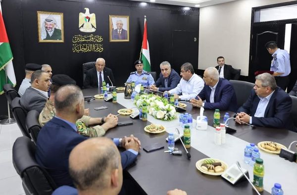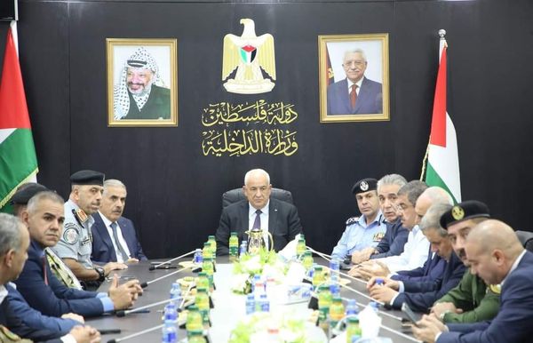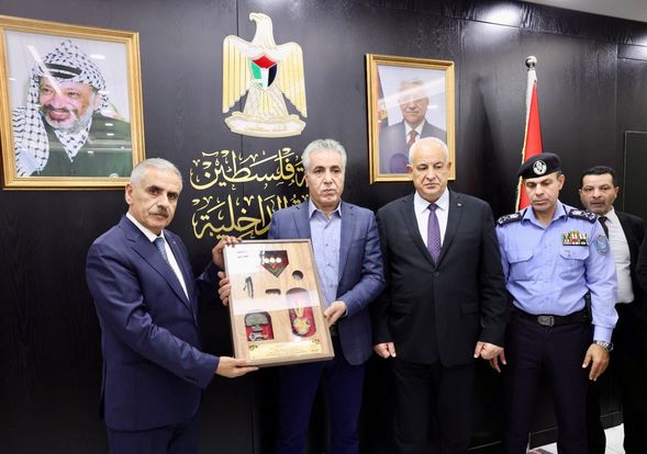 Ramallah_19/9/2024 Minister of Interior, Major General Ziad Hab Al-Rih, honored former Police Director General, Major General Yousef Al-Helou, on the occasion of his retirement from leading the police force, in the presence of a number of leaders of the security establishment, today at the headquarters of the Ministry of Interior.