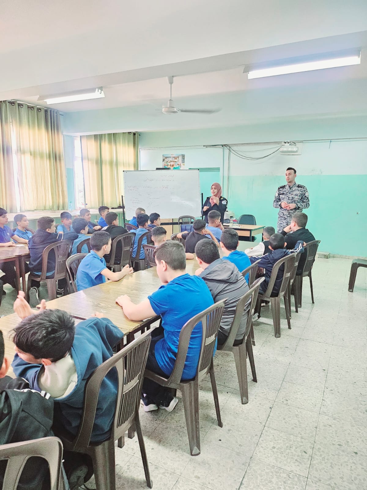 Ramallah - 9/24/2024 The Customs Officer gave an awareness lecture to students of Ramallah Boys' Elementary School affiliated with the United Nations Relief and Works Agency for Palestine Refugees in the Near East (UNRWA), today, Tuesday, in Ramallah and Al-Bireh, from which (45) students benefited