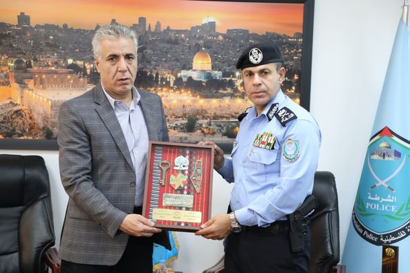 Ramallah - 10/1/2024 The Commander of the Customs Police Department, Major General Iyad Barakat, accompanied by a delegation from the department's leadership, met with the Director General of Police, Major General Allam Al-Saqa, at the police headquarters in the city of Ramallah and Al-Bireh.