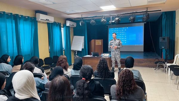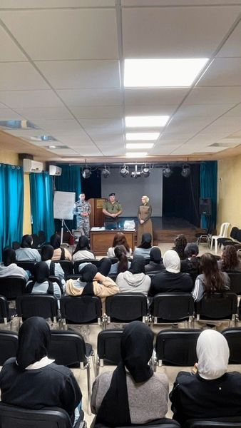 Ramallah - 10/8/2024 The Customs Officer in the Ramallah and Al-Bireh Directorate and the Suburbs of Jerusalem, in cooperation with the Political and National Guidance, gave an awareness lecture to students of Aziz Shaheen Girls Secondary School, today, Tuesday, in the Ramallah and Al-Bireh Governorate, from which (50) students benefited.
