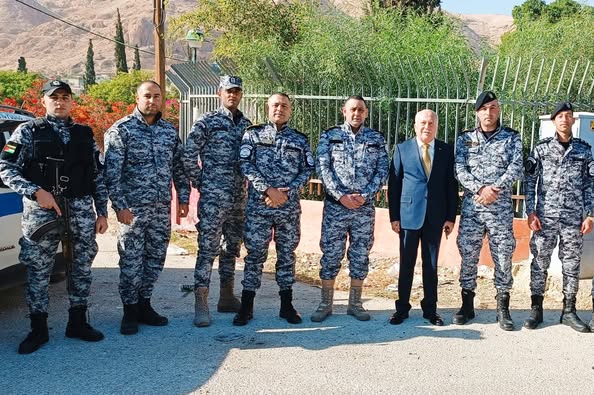 رام الله_ 15/12/2024 شارك جهاز الضابطة الجمركية في محافظة أريحا، في استقبال معالي وزير الاقتصاد الوطني م. محمد العامور ومعالي وزير الصناعة السيد/ عرفات عصفور، اليوم الأحد، في دار المحافظة، خلال زيارة رسمية تهدف إلى الاطلاع على احتياجات المصانع والمؤسسات الاقتصادية في المحافظة.