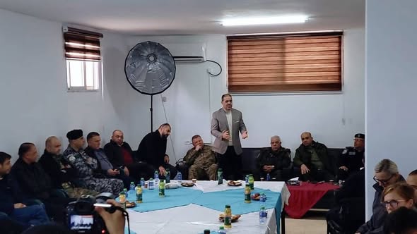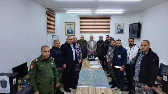 رام الله - 15/12/2025 نفذت المؤسسة الأمنية في محافظة سلفيت اليوم الأحد، بحضور محافظ سلفيت مصطفى طقاطقة والمفوض السياسي العام والناطق الرسمي لقوى الامن اللواء انور رجب، ورئيس هيئة التدريب العسكري اللواء ركن محمود هارون، ومدراء وممثلي المؤسسات الامنية وعدد من الضباط والشركاء الدوليين، تمرينًا تدريبيًا مشتركًا بعنوان "حماية وطن 2"، وذلك في إطار الجهود المتواصلة لرفع مستوى الجاهزية وتعزيز قدرات الطواقم الأمنية في الاستجابة السريعة والفعّالة للحالات الطارئة.