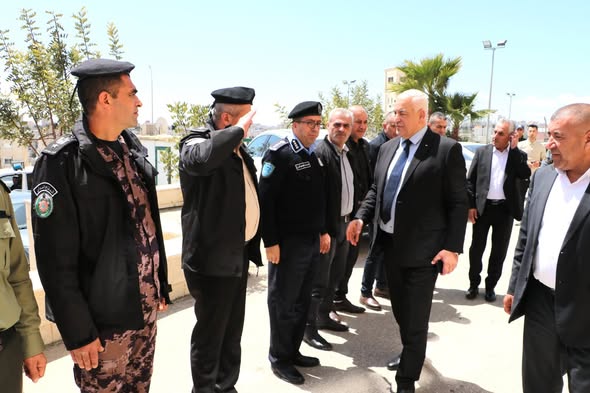 رام الله - 13/4/2026 شارك مدير الضابطة الجمركية في محافظة الخليل المقدم/ نضال الصيفي، وضباط المديرية، باستقبال معالي وزير الداخلية اللواء/ زياد هب الريح، اليوم الإثنين في دار المحافطة، بحضور محافظ محافظة الخليل الأخ/ خالد دودين، ومدراء المؤسسة الأمنية في المحافظة.