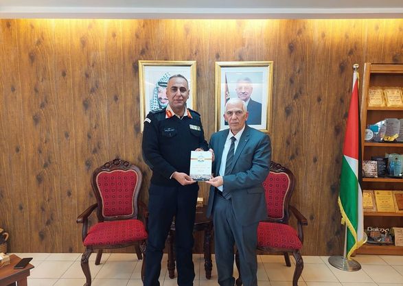 رام الله _ 5/2/2023 قام جهاز الضابطة الجمركية ممثلاً بمدير مديرية بيت لحم العقيد/ احمد بشارات ، اليوم الأحد، بتسليم التقرير السنوي لانجازات الضابطة الجمركية وأعمالها لعام "2022" لمحافظ محافظة بيت لحم اللواء/ كامل حميد في دار المحافظة.