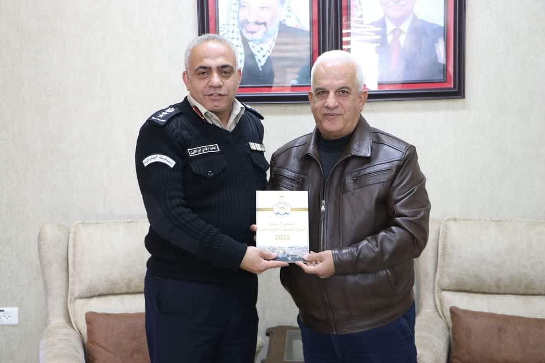 رام الله _ 6/2/2023 قام جهاز الضابطة الجمركية ممثلاً بمدير مديرية الخليل العقيد/ فادي أبو القرن، بتسليم التقرير السنوي لانجازات الضابطة الجمركية وأعمالها لعام "2022" لمحافظ محافظة الخليل اللواء/ جبرين البكري، اليوم الإثنين في دار المحافظة.