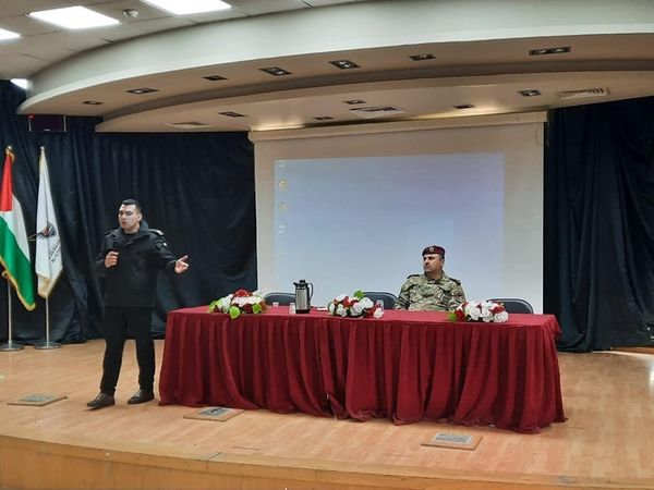Ramallah _ 3/21/2023 The customs police force, represented by the Deputy Director of Planning and Training Major/ Badr Al-Maghrabi, presented two central lectures about its tasks for students of the Diploma in Customs Sciences, and the third-year Bachelor’s degree from Al-Istiqlal University, today, Tuesday, in Jericho. (320) male and female students benefited from it. .