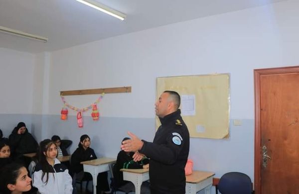 Ramallah_ 3/22/2023 Today, Wednesday, the Customs and Police Department presented educational lectures to students of Al-Khatib Elementary School in Ramallah and Al-Bireh, benefiting (100) male and female students.