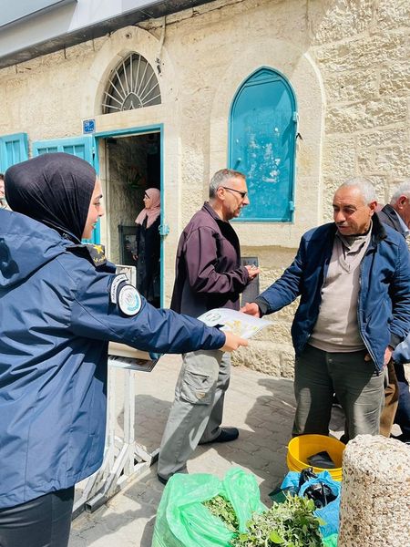 Ramallah _ 3/22/2023 The customs police, in cooperation with the police, the gender unit in the security establishment, and the Hearts Encapsulated in Good volunteer team, today, Wednesday, in the governorates of Nablus and Bethlehem, distributed sweets and Qurans to citizens, drivers, and passersby; To congratulate them on the occasion of the holy month of Ramadan