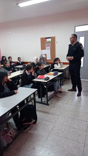 Ramallah _ 3/29/2023 The customs police apparatus, in cooperation with the political and national guidance, presented an awareness lecture to the students of Ain Misbah High Basic Mixed School in Ramallah and Al-Bireh Governorate, today, Wednesday, from which (40) students benefited, as part of the control program in spreading awareness customs.
