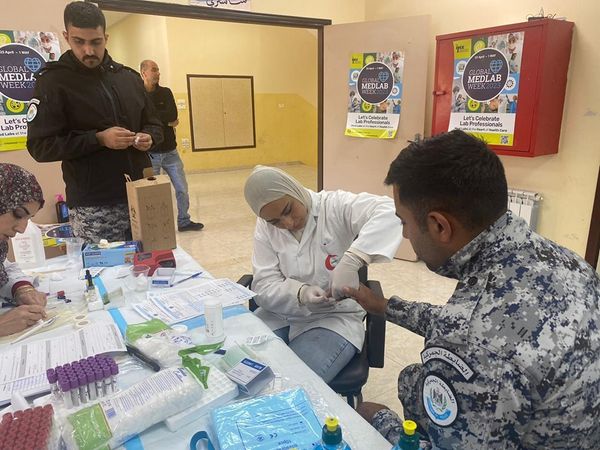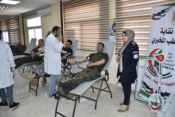 Ramallah _ 2/5/2023 under the auspices of the Salfit Governorate, Major General / Dr. Abdullah Kamil: The customs police apparatus, in cooperation with the Public Relations Committee in the governorate, the Laboratory Medicine Syndicate in Salfit Governorate, the Central Blood Bank, a volunteer organization, and the student youth at Al-Quds Open University, participated today, Tuesday, in the Martyr Shastri Hall in Salfit Governorate, with the support of the Sector Health by donating blood for the benefit of the blood bank in Palestinian hospitals.