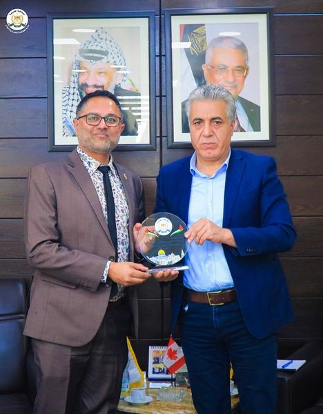 Ramallah _ 11/5/2023 The Commander of the Customs Police, Major General Iyad Barakat, received today, Thursday, in his office in Ramallah, His Excellency the Canadian Ambassador to the State of Palestine, Mr. David Da Silva, and his accompanying delegation.