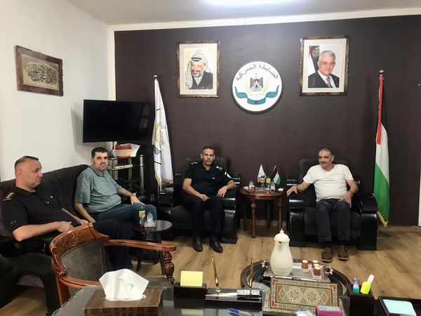 Ramallah - 9/19/2023 The Director of Customs Police in Qalqilya Governorate, Lieutenant Colonel Abdel Karim Basita, received today, Tuesday in his office, the Director of Military Intelligence in Qalqilya Governorate, Colonel Ahmed Jabarin, and the Director of the National Economy, Mr. Hussam Al-Shaer.