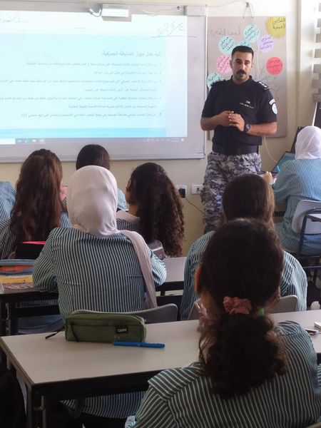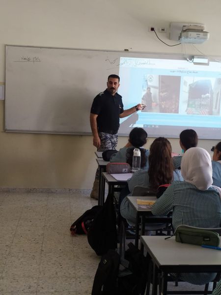 Ramallah - 9/20/2023 The Customs Police Service, in cooperation with the Palestinian Police Service, presented an awareness lecture to the students of the Faisal Al-Husseini Higher Primary School for Girls in the Ramallah and Al-Bireh Governorate, today, Wednesday, from which (50) students benefited. Within the control program to spread customs awareness.