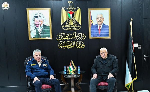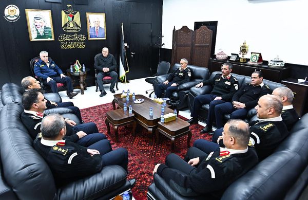 Ramallah - 1/30/2024 The Commander of the Customs Police Service, Major General Iyad Barakat, delivered the annual report on the achievements of the Customs Police and its work for the year “2023” to His Excellency the Minister of the Interior, Major General Ziad Hab Al-Rih, today, Tuesday, at the Ministry of the Interior in Ramallah, in the presence of a number of department directors. Central device.