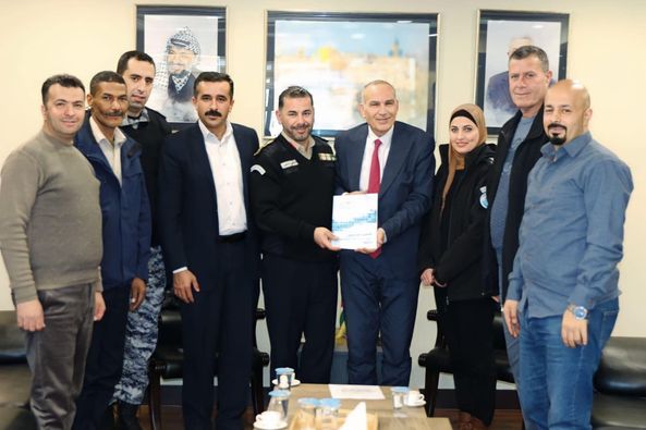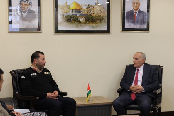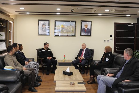 Ramallah - 2/19/2024 The Minister of Communications and Information Technology met with Dr. Ishaq Sidr, with a delegation from the Customs Police Service, represented by the Director of the Control and Inspection Department, Colonel Lotfi Nasser, at the Ministry’s headquarters, and the two parties discussed joint work files and their impact on the security of the communications and postal sectors.