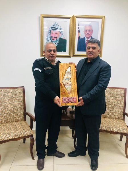 In turn, Colonel Abu Al-Qarn conveyed the greetings of the Commander of the Service, Major General Iyad Barakat, and his congratulations to Brother Ghassan Douglas on the occasion of his assuming the position of Governor of Nablus Governorate, and his wishes for him success in serving the Governorate and our people.