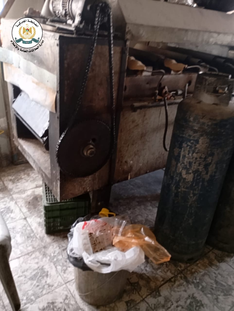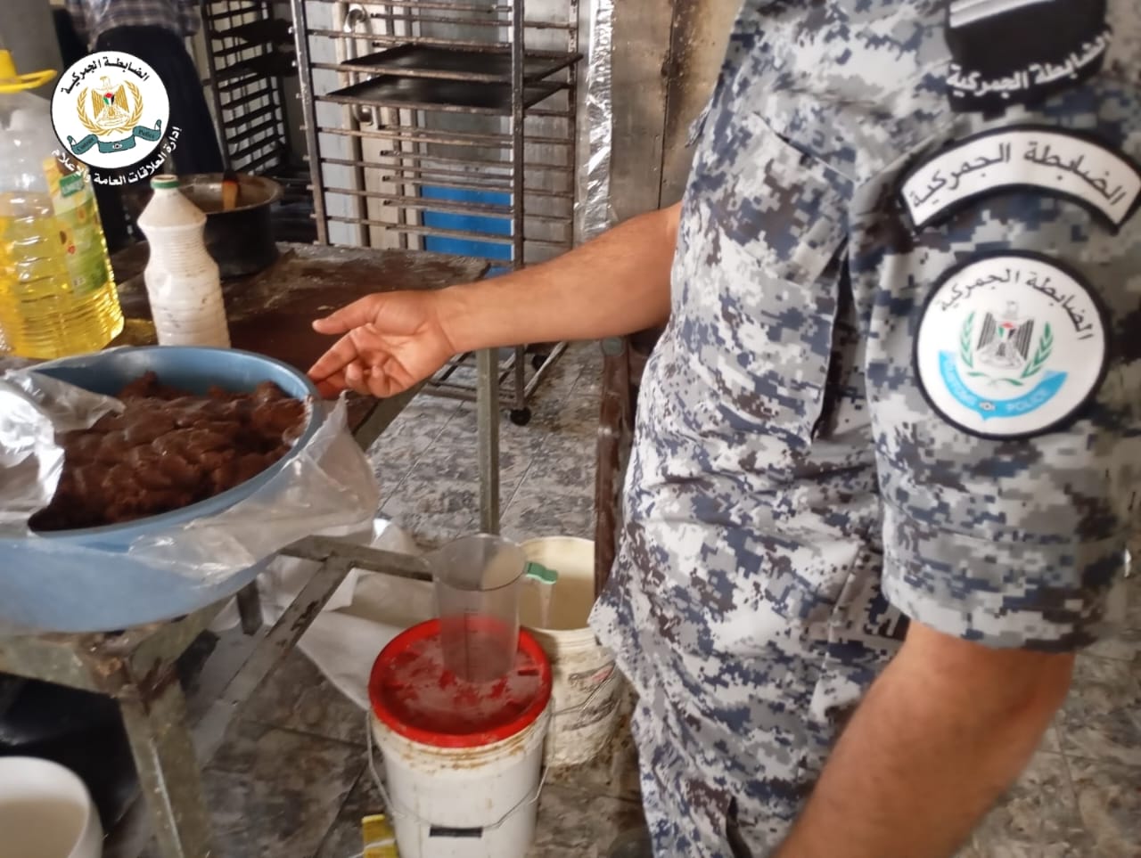 Ramallah - 4/23/2024 Based on information: The Customs Police Service and the specialized authorities in the Public Safety Committee, today, Tuesday, in the Hebron Governorate, suspended a bakery from operating due to its lack of the minimum health and environmental safety conditions, and public safety conditions.