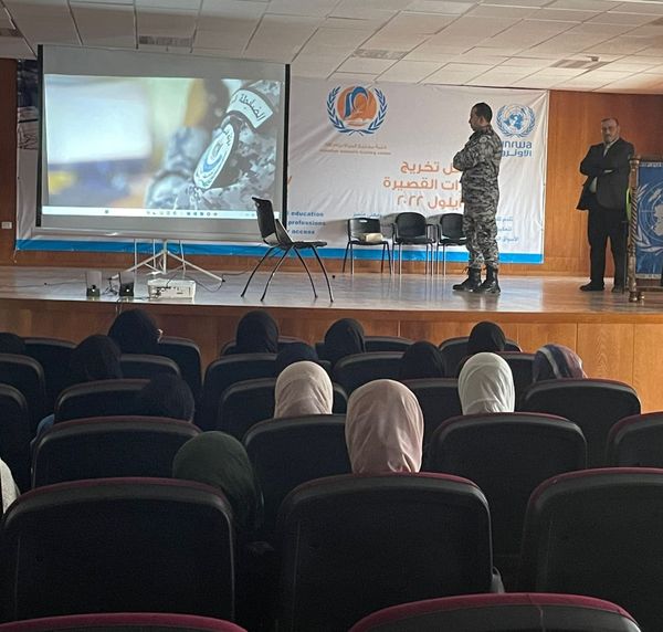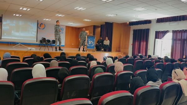 Ramallah - 5/7/2024 The Customs Police Service in the Ramallah and Al-Bireh Directorate and the suburbs of Jerusalem presented an awareness lecture to the students of Al-Tira Women’s Community College, today, Tuesday, in Ramallah, from which (75) students benefited. As part of the customs police program to spread awareness about the nature of its work and its role in protecting markets and combating tax evasion and customs evasion.