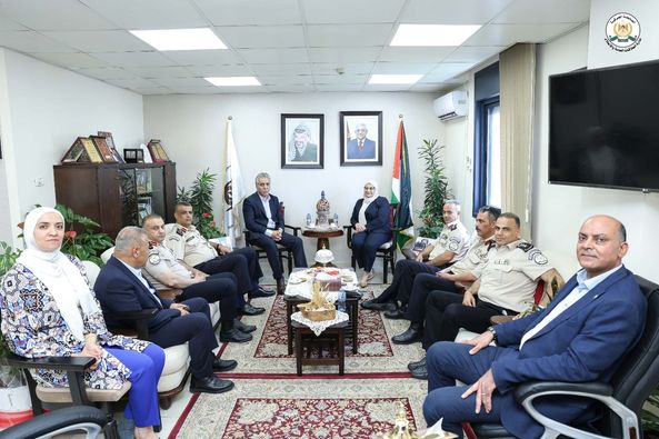 Ramallah - 5/28/2024 The Commander of the Customs Police Service, Major General Iyad Barakat, and his accompanying delegation met today, Tuesday, with the Head of the Financial and Administrative Control Bureau, A. Amal Faraj in her office in Ramallah, to enhance ways of joint cooperation between the two parties.