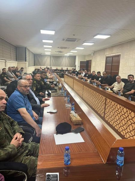 During the meeting, Major General Ziad Hab Al-Rih stressed his full support and support for all members of the Palestinian security forces in their mission to maintain security and safety. He stressed the importance of applying the rule of law to everyone with the utmost firmness and transparency, with the aim of strengthening civil peace in accordance with the directives of President Mahmoud Abbas.