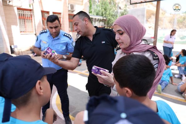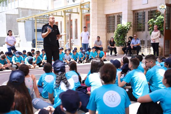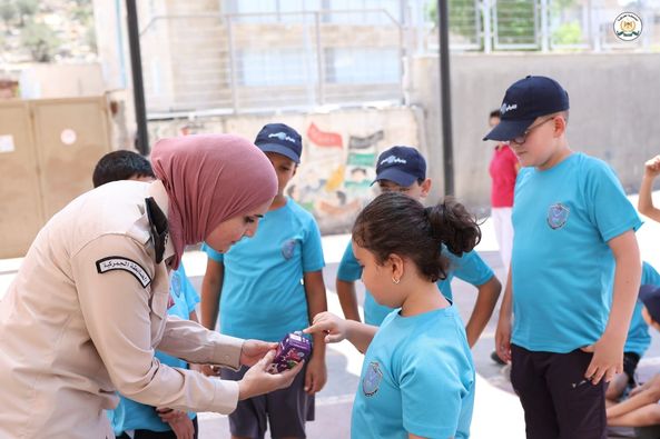 Ramallah - 7/23/2024 The Public Relations and Media Department of the Customs Police Service presented an awareness lecture to the students of the “Little Policeman” summer camp, affiliated with the Palestinian Police Service, today, Tuesday, at the Ziyad Abu Ain School in the Ramallah and Al-Bireh Governorate, from which (130) benefited. Male and female students.