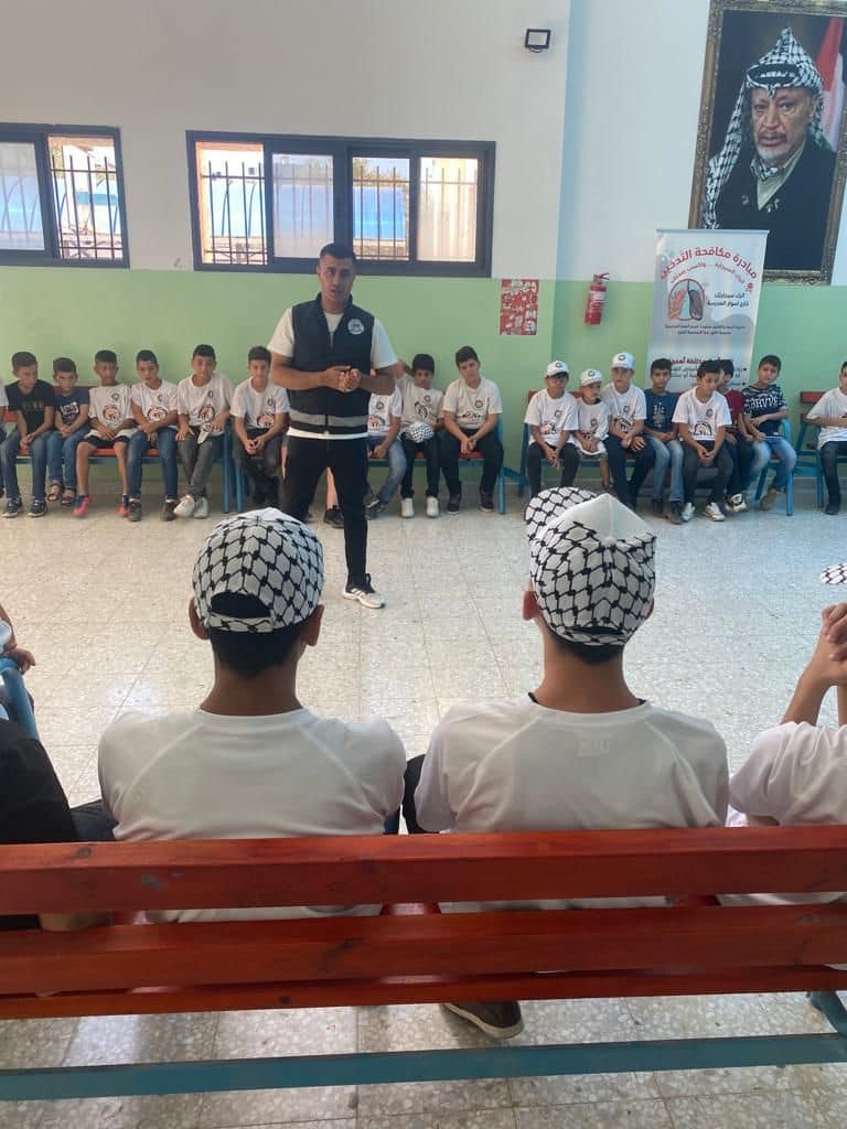 رام الله _ 17/7/2023 قدم جهاز الضابطة الجمركية، محاضرة توعوية لطلائع مخيم صيفي "القادسية، والقسطل"، اليوم الإثنين في محافظة الخليل، استفاد منها (110) مشاركًا.