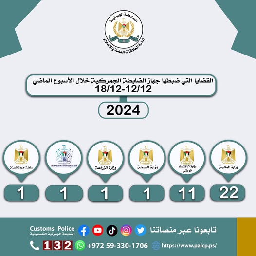 جهاز الضابطة الجمركية يتعامل مع 37 قضية خلال الاسبوع الماضي بالتعاون مع الجهات الشريكة أبرزها على النحو الآتي :