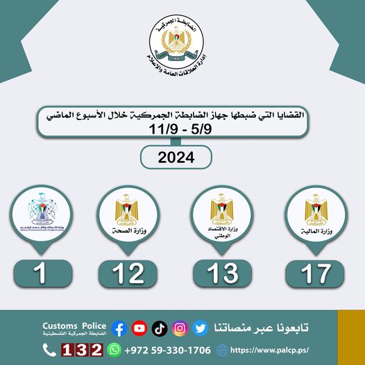 The Customs Police Department dealt with 43 cases during the past week in cooperation with partner agencies, most notably as follows: More Details