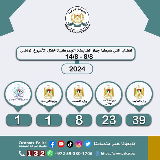 The Customs Police Department dealt with 84 cases during the past week in cooperation with partner agencies