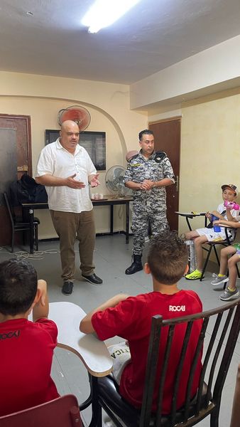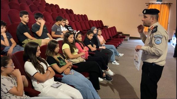 The customs police gives an awareness lecture to the students of the Funfit and Little Genius summer camp in Ramallah and Al-Bireh