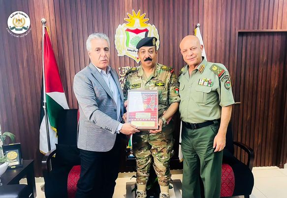 Major General Iyad Barakat receives the Director General of the Military Financial Administration, Major General Fadl Zidan, in his office in Ramallah