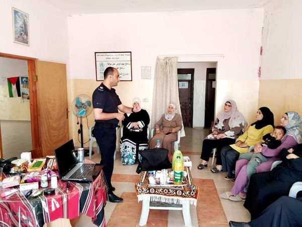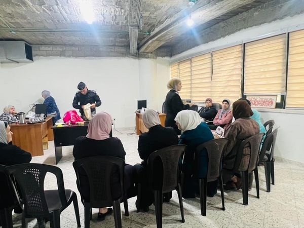 The customs police gives an awareness lecture to the women of the women’s center in the eastern district of Jenin