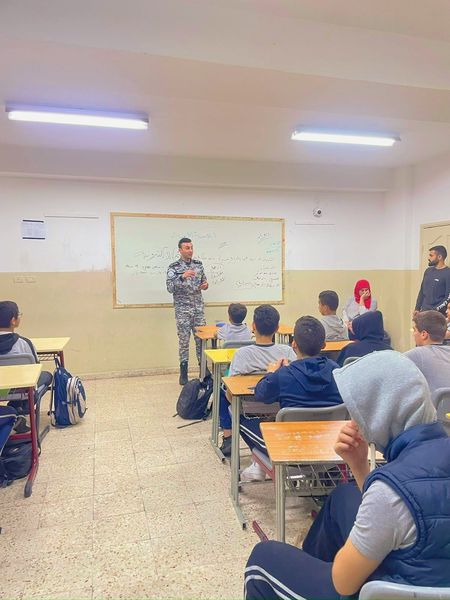 The customs police gives an awareness lecture to students of the Islamic Basic School for Boys in Nablus