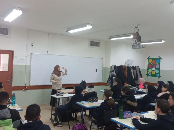 The customs police gives an awareness lecture to the students of the Islamic School in Ramallah and Al-Bireh