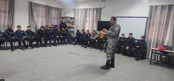 The customs police gives an awareness lecture to the students of the Qur’an and Future Generation Academy Secondary School for Boys in Nablus Governorate