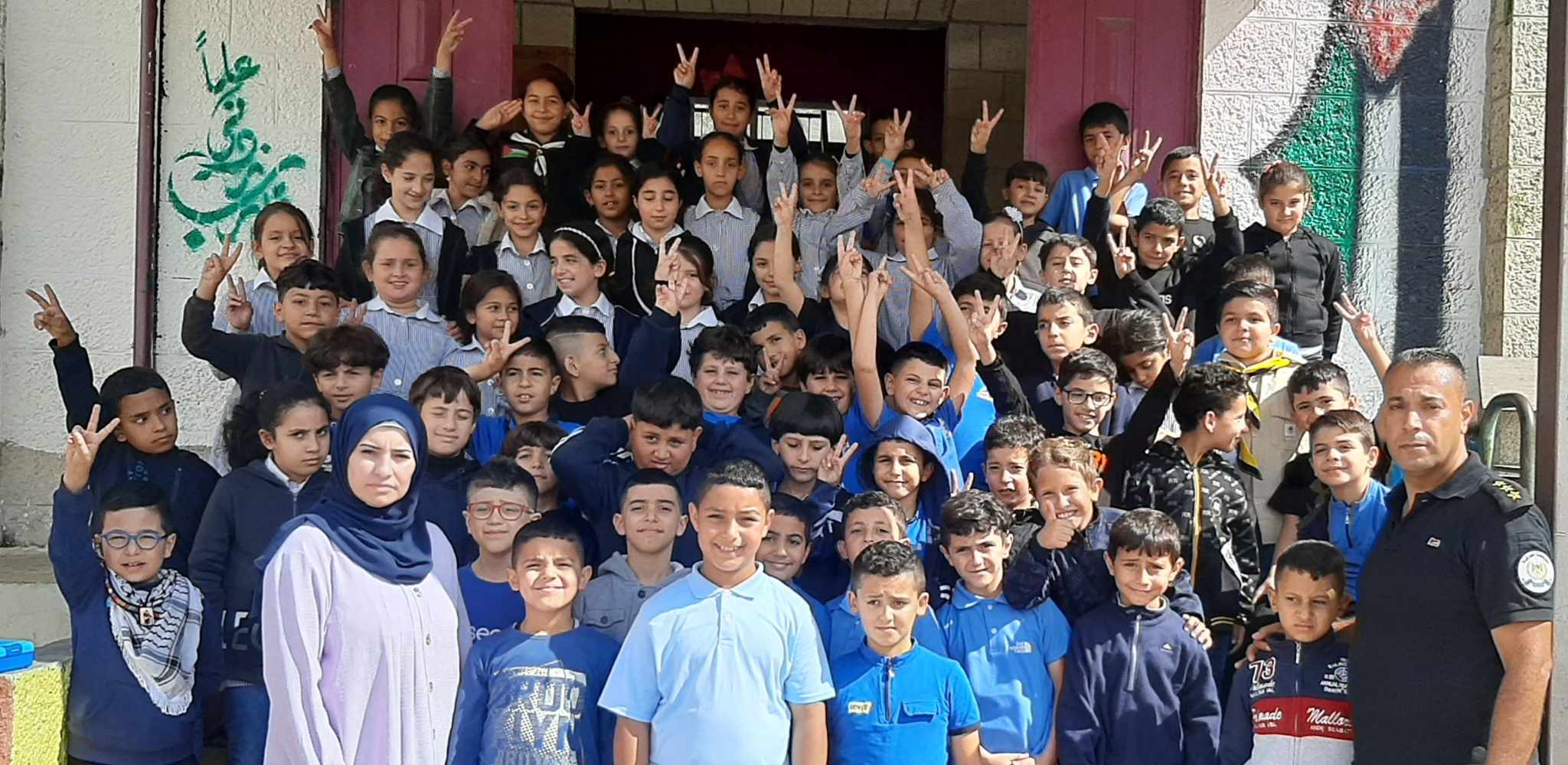 The customs police provides an entertaining and awareness-raising activity for the children of the Ibdaa Foundation kindergarten in Bethlehem Governorate.