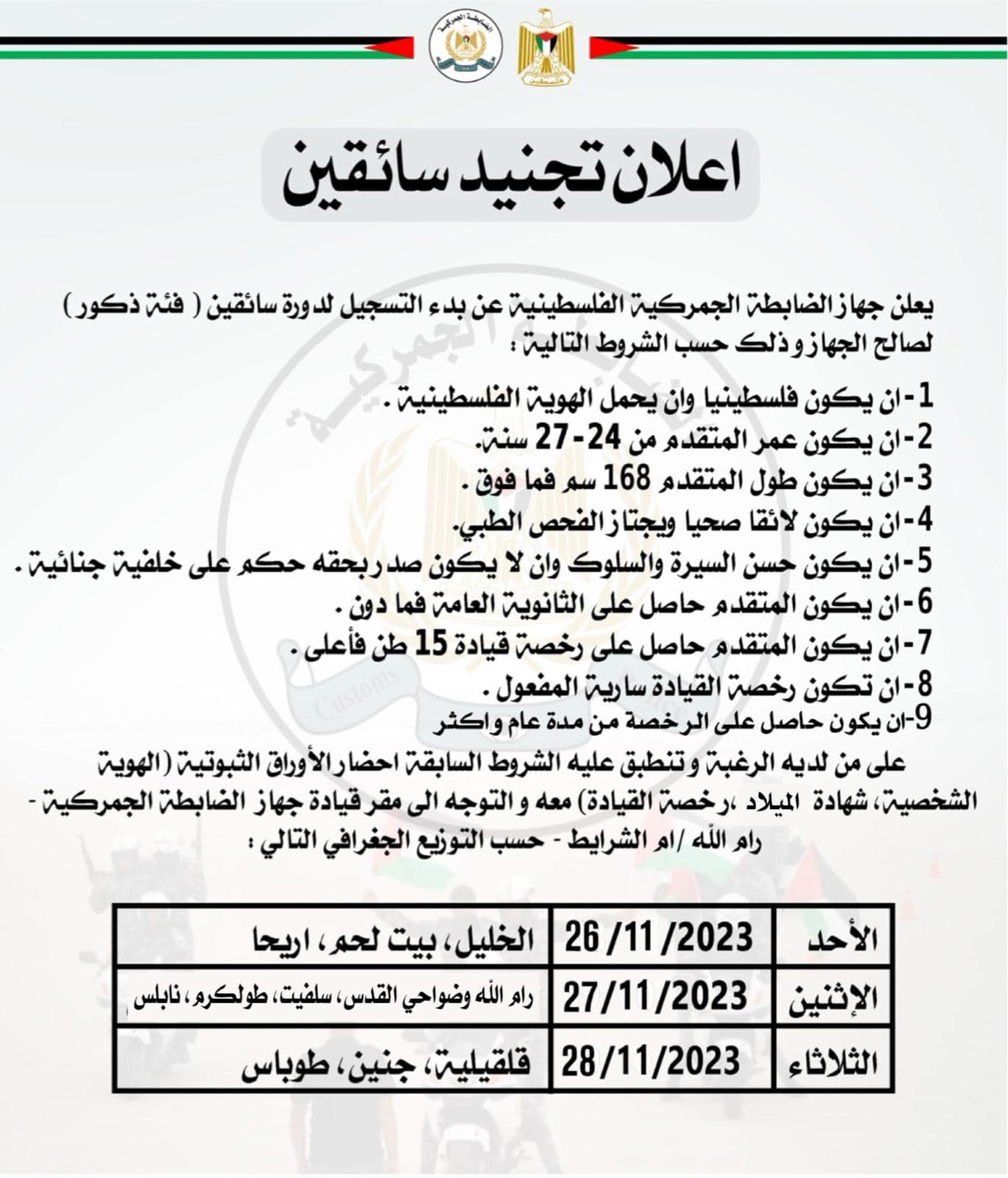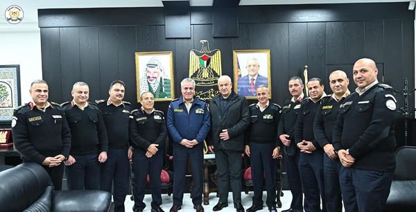 The customs police gives an awareness lecture to students of Terra Santa College in Bethlehem Governorate