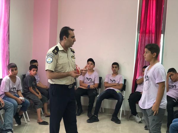 The customs police presents an awareness lecture for the pioneers of the "Aidoun" summer camp in Bethlehem