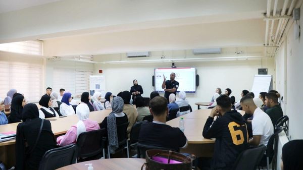 Ramallah - 10/14/2024 The Public Relations and Media Department of the Customs Officer gave an awareness lecture to students of Al-Tira Women's Community College affiliated with the United Nations Relief and Works Agency for Palestine Refugees in the Near East (UNRWA), in the specializations of (Architectural Engineering, Software, Management and Office Automation), today, Monday, in Ramallah and Al-Bireh, from which (80) male and female students benefited.