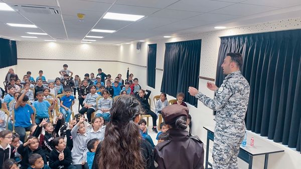 Ramallah _10/22/2024 The Customs Officer, in cooperation with the Political and National Guidance Authority, gave an awareness lecture to students of Ramallah Mixed Elementary Boys School in Ramallah and Al-Bireh Governorate, today, Tuesday, from which (92) male and female students benefited.