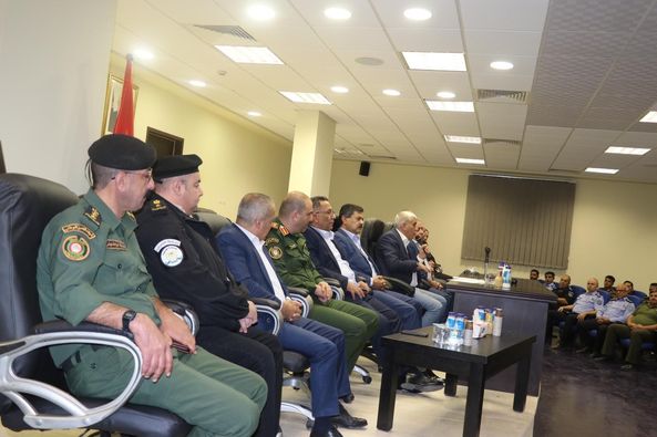 Ramallah, 10/22/2024 The Customs Police Department, represented by the Director of the Bethlehem Directorate, Lieutenant Colonel Ayman Abu Shakra, participated today, Tuesday, in a seminar held at the headquarters of the Bethlehem Region Command under the title "Security is Weapon, Not Weapons are Security", delivered by Dr. Nasser Al-Lahham. The seminar was attended by His Excellency the Governor of Bethlehem, Brother Muhammad Taha, along with directors and representatives of the security establishment in the governorate.