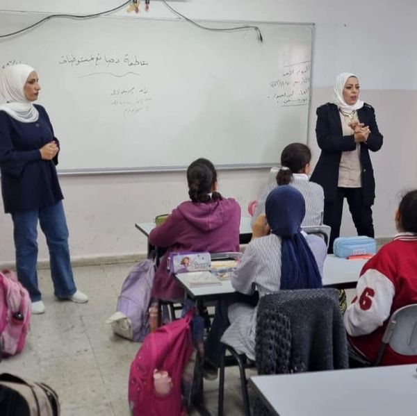 Ramallah - 11/17/2024 The Customs Police Department, in cooperation with the Political and National Guidance Authority, gave an awareness lecture to students of Kafel Haris Girls Elementary School, today, Sunday, in Salfit Governorate, from which (35) students benefited.