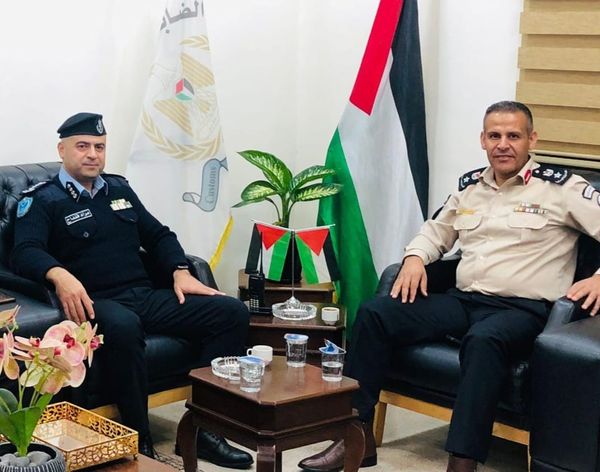 Ramallah - 11/17/2024 The Director of Customs Police in Bethlehem Governorate, Lieutenant Colonel Abdul Karim Basaytah, received in his office the Director of Police in Bethlehem Governorate, Brigadier General Murad Qandah, and his accompanying delegation.