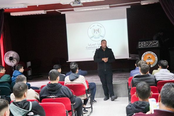 Ramallah - 11/18/2024 The awareness and guidance officers in the Public Relations and Media Department of the Customs Officers gave an awareness lecture to students of the Islamic School for Boys, today, Monday, in Ramallah and Al-Bireh, from which (70) students benefited.