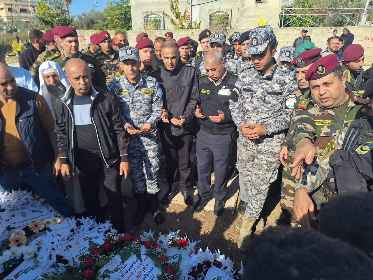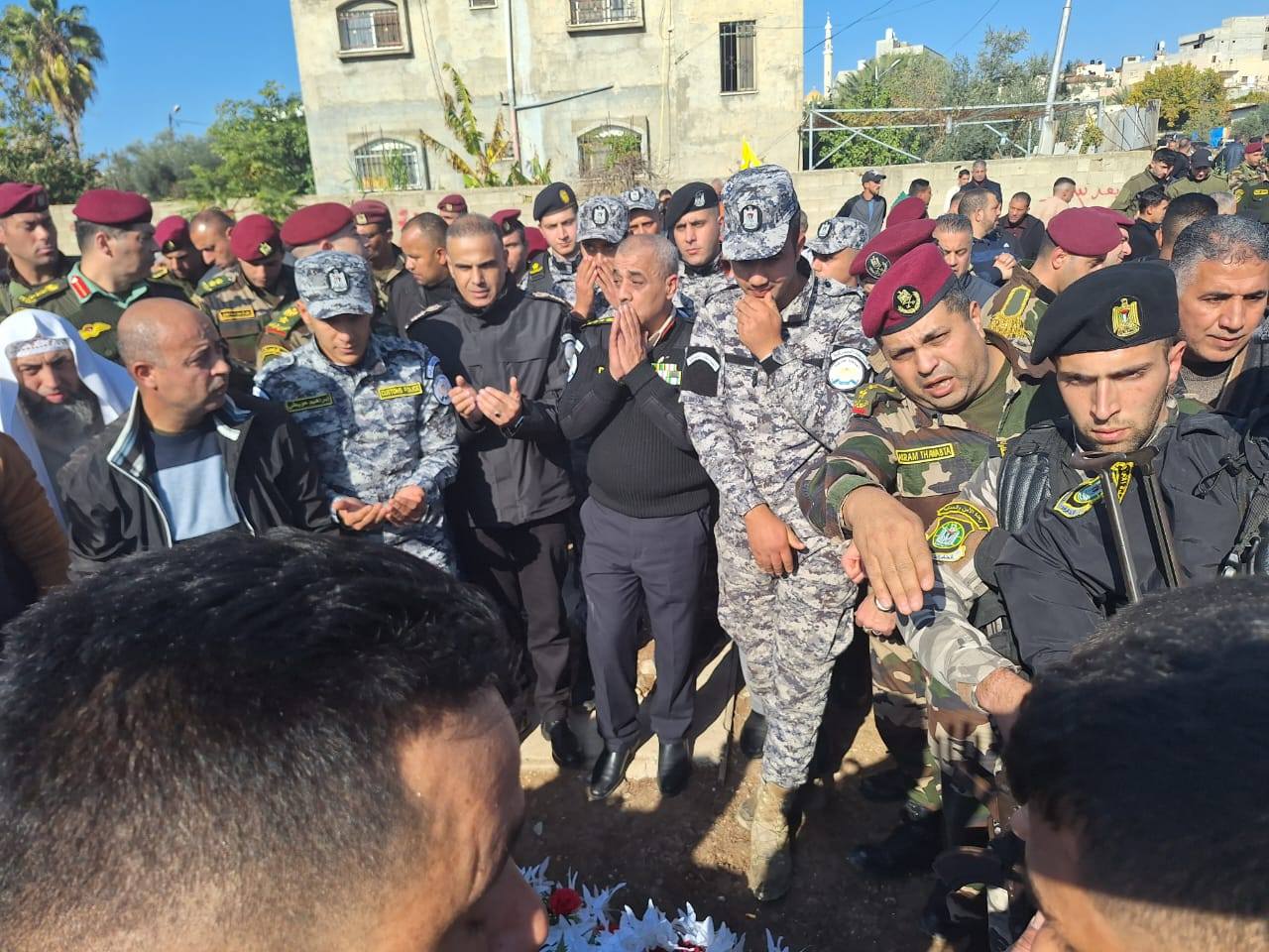 Ramallah_12/23/2024 Today, Monday, the Customs Police participated in the funeral ceremony of the national duty martyr, First Lieutenant Saher Arheel, a member of the Presidential Guard, to his final resting place in his hometown in the Shuweika suburb of Tulkarm.