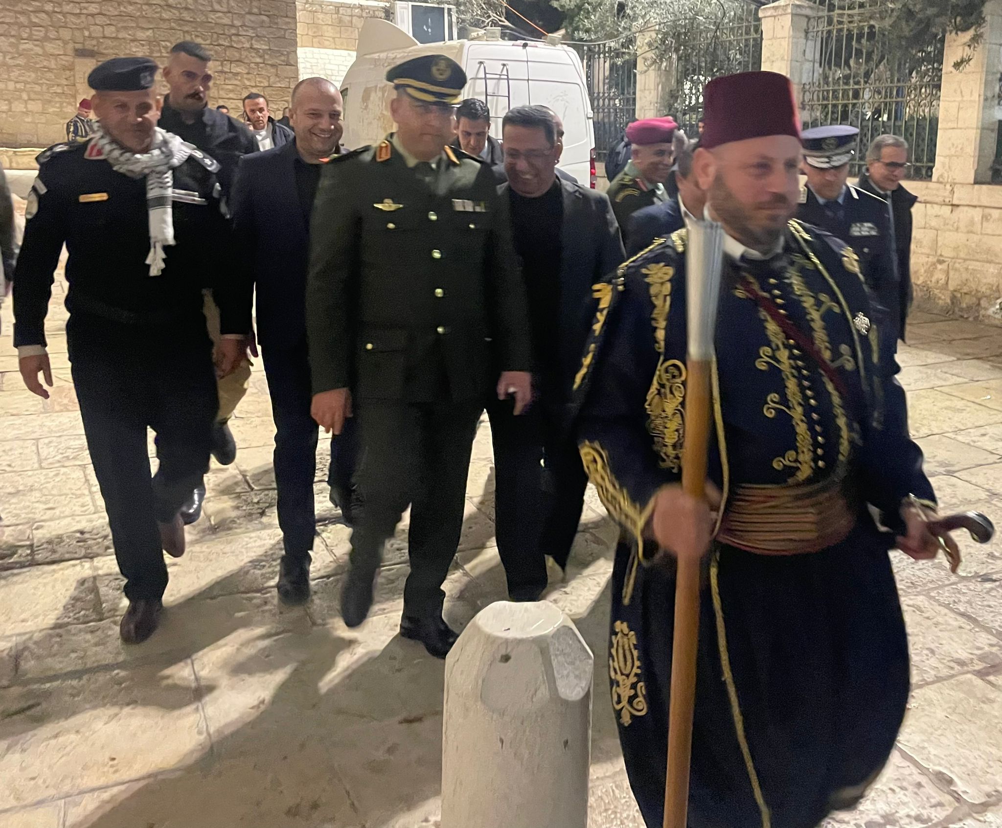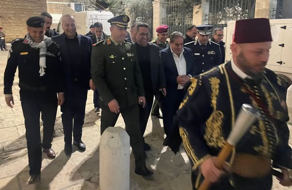 Ramallah_12/24/2024 The Customs Police Department in Bethlehem Governorate, represented by its Director, Lieutenant Colonel Abdul Karim Basaytah, participated this evening, Tuesday, in the Christmas ceremonies according to the Western calendar, and the reception of His Beatitude Patriarch Pierre Battista in the city of Bethlehem.
