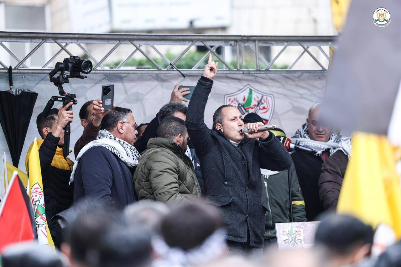 In his speech, the Chairman of the Palestinian National Council, Rawhi Fattouh, stressed that the "Fatah" movement remains a symbol of national unity, sending a strong message against the plans that seek to liquidate the Palestinian cause, at a sensitive time when the Palestinian people are facing major challenges.