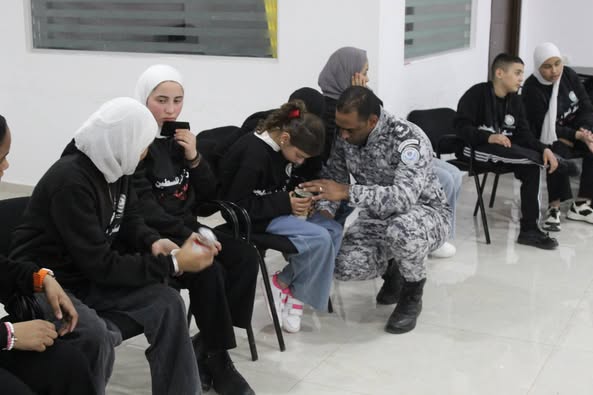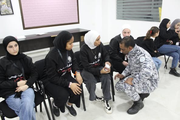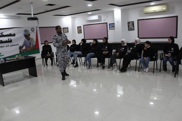 Ramallah - 1/22/2025 The Customs Police Department gave an awareness lecture to students of the "Palestine in the Eyes of the Sons of Martyrs" Camp, affiliated with the Supreme Council for Youth and Sports, today, Wednesday, in the Al-Amal Sports City in Jericho Governorate, from which (30) male and female students benefited.